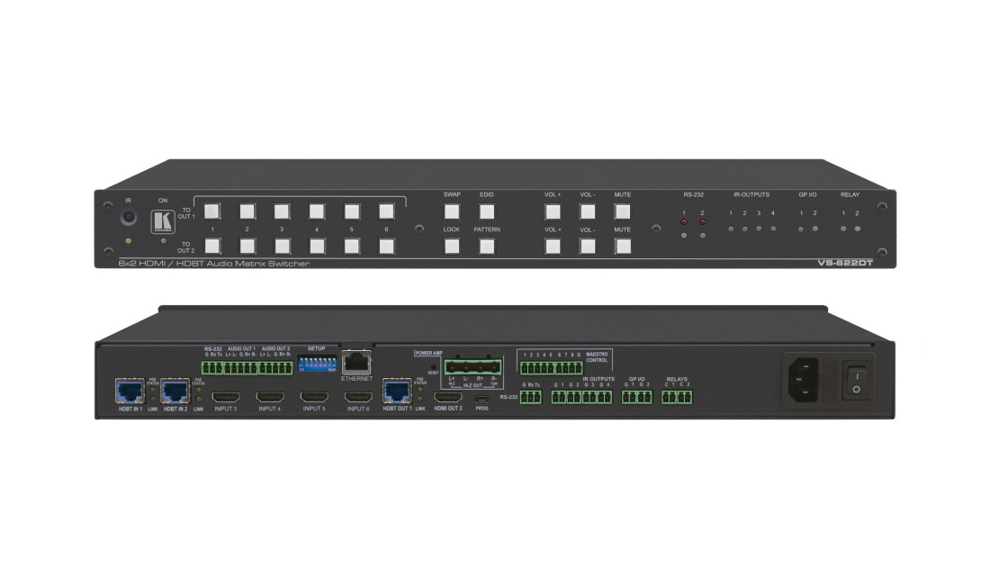 KRAMER 6x2 UHD HDMI Matrix Switcher with HDMI and HDBT outputs