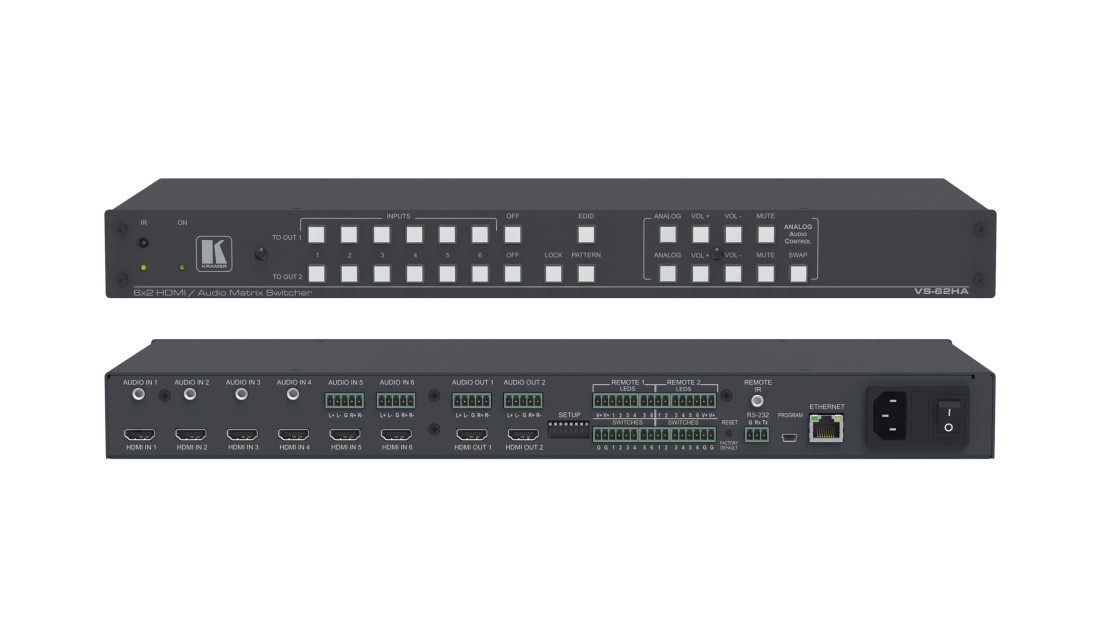KRAMER 6x2 UHD HDMI matrix switcher with analog audio switching