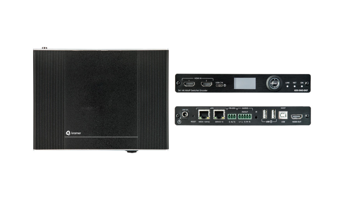 KRAMER Auto Switch AVoIP Encoder with 2 HDMI and USB-C inputs, DANTE